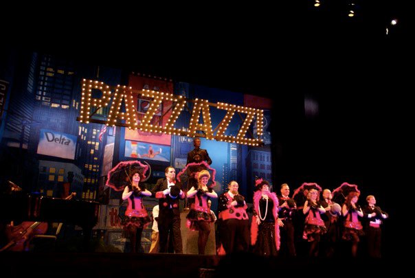Although maybe not familiar with Messrs. Fields and Weber personally, from the polished portrayals given by Dan Saunders and Joey D’Auria respectively, one gets the distinct impression they hit pretty close to the mark. Interesting too is that an important aspect to all of Sherman’s scores involves establishing the time period early on (“A British Man” and “Sister Suffragettes” in “Mary Poppins”, or “Bed Knobs & Broomstick’s” “Soldier’s Of The Old Home Guard” are prime examples;) here was no different, introducing the story as a flashback by (of all things,) the Statue of George M. Cohan in Times Square. Clad in copper face-paint and a metallic suit, dashing song-and-dance man Bill Lewis effectively raised the curtain on what was to be a rousing salute to old Broadway in ”The Great White Way”.