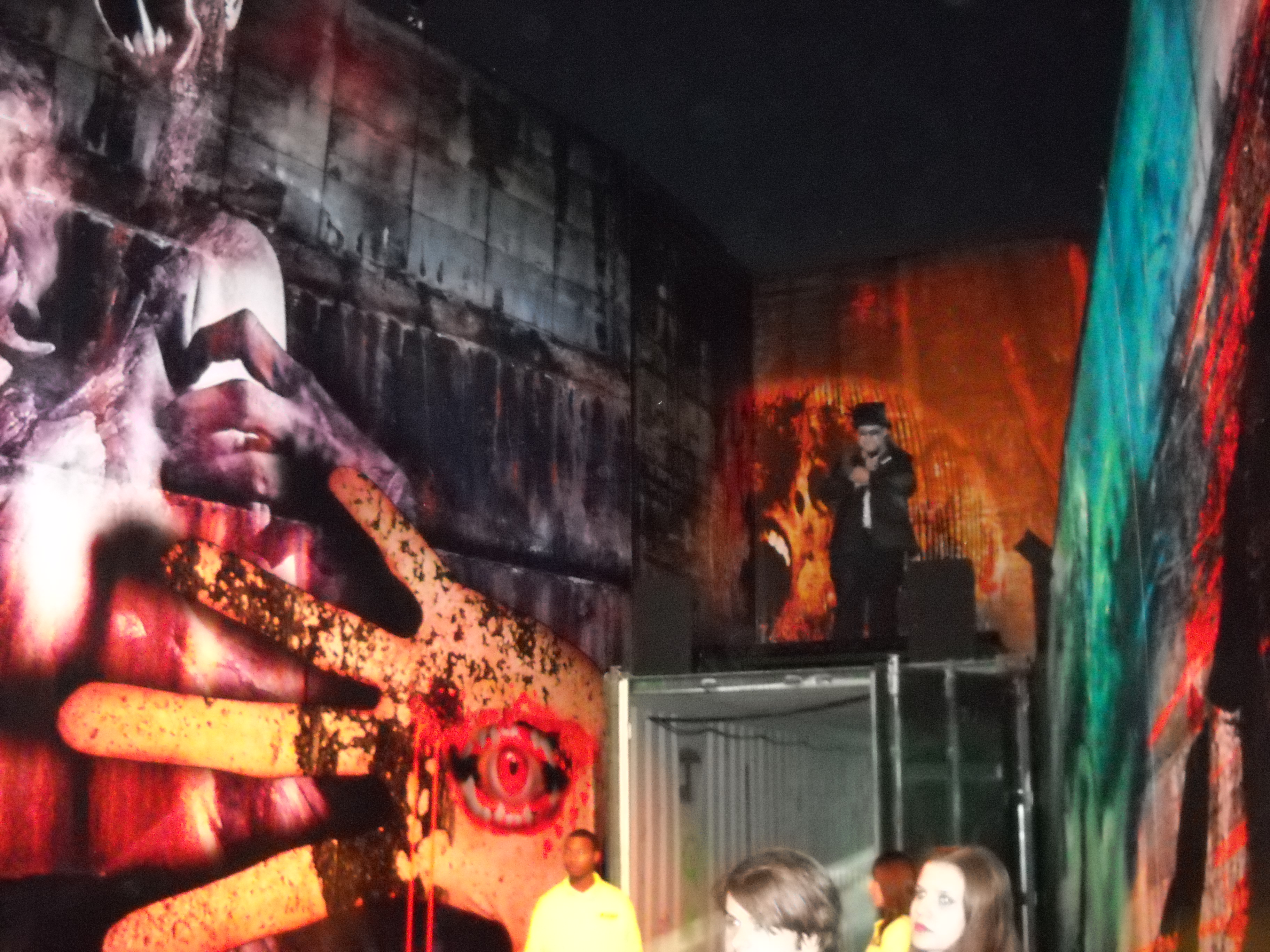 Skater/sliders too, are a fairly common way to work up a fright and appear throughout many similar events–and here is no exception. Blending into the background just waiting to zip across the paths of the unwary, they’re always a ‘terror-ific’ way to throw a good start into a crowd. Yet while “sliders’ usually work their talents outdoors, this is also where many of the mazes at “Dark Harbor“ make themselves distinct. To encounter a slider anywhere out on the grounds is startling; to do so in the close confines of a darkened maze can be positively heart-stopping! Likewise, from scorched to scaly, mutated or mutilated, the make-up effects sported by these merry fiends stalking “Fiend Mary’s” innermost sanctum are nothing less than…well, “Dead-On”.