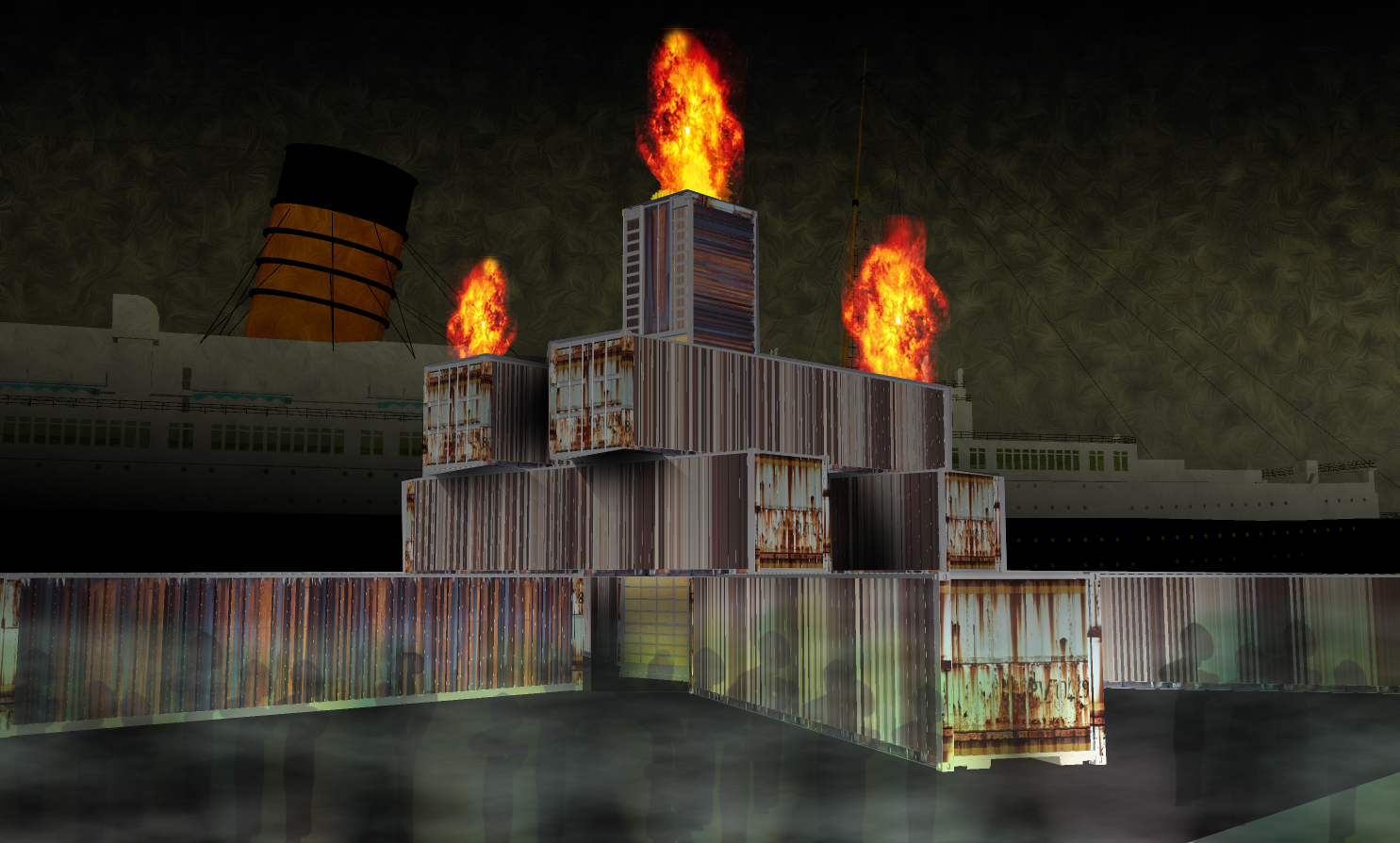 “We wanted total emersion at the point of entry,” says General Manager Uwe Roggenthien, and right from the start, foolish mortals are lured into the whole haunted happening via a twisting tunnel constructed entirely from cargo containers. Standing a top this doorway to damnation, they’ll find hideously-costumed characters beckoning them on to all the sinister surprises that lie in store for them. Once inside, the challenge is to avoid all the ’dearly’ and ’nearly’ departed attempting to impede the way. Upon emerging, those among the living find themselves in a peculiar post-apocalyptic seaport plagued with demons, zombies, mutants and every manner of walking ’dread’(–imaginable or otherwise!) Meanwhile, at the center of this diabolical “Landing of the Lost” is the mesmerizing “Hell’s Bell Tower”, similarly constructed from an additional eleven containers that rise up a breathtaking thirty-three feet with flames piecing the night sky (at jolting intervals) for a full twenty feet more.