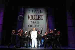 Broadway headliner Dee Hoty leads the cast playing the long-suffering, under appreciated (well, they pretty much all are at this place,) office manager, Violet Newstead. Hoty’s Violet is the patient yet much put upon kind which every office runs on–and in this case, runs over! (“Its hard to swallow pride…when you know the truth inside,” she waxes at one point.) Happily, she has several moments to shine–not least of which is her second act opener, “One Of The Boys” that has her imagining what life would be like were she to at last be given the respect that’s way over due her.)