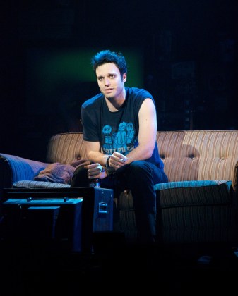 Tunny, on the other hand, quickly grows bored and joins the military. Upon enlisting, he and the other recruits dispiritedly exit the stage much like prisoners in a concentration camp entering the gas chambers. Meanwhile, their buddy Will stays behind with his pregnant girlfriend. His is one of the trickiest roles in the piece as much of what he has to do is continuously sit–in full view–on a couch situated down-stage right. Fortunately, as Will, Jake Epstein possesses a voice as big as the Ahmanson has ever seen, so when his turn comes to react or vocalize, it’s well worth waiting for! Close to the climax of the trio’s isolated adventures, they are rejoined–at least spiritually–via the song “Wake Me Up When September Ends”. Afterwards, Jonny, deciding to straighten out his life takes a job in an office. Nonetheless, backed by a chorus of suit-wearing, ‘sensibly-dressed’ office workers, one can’t help but feel wistful as light projections like silent ghosts wash up, over and away from them, obviously signifying the renunciation of youth and freedom.