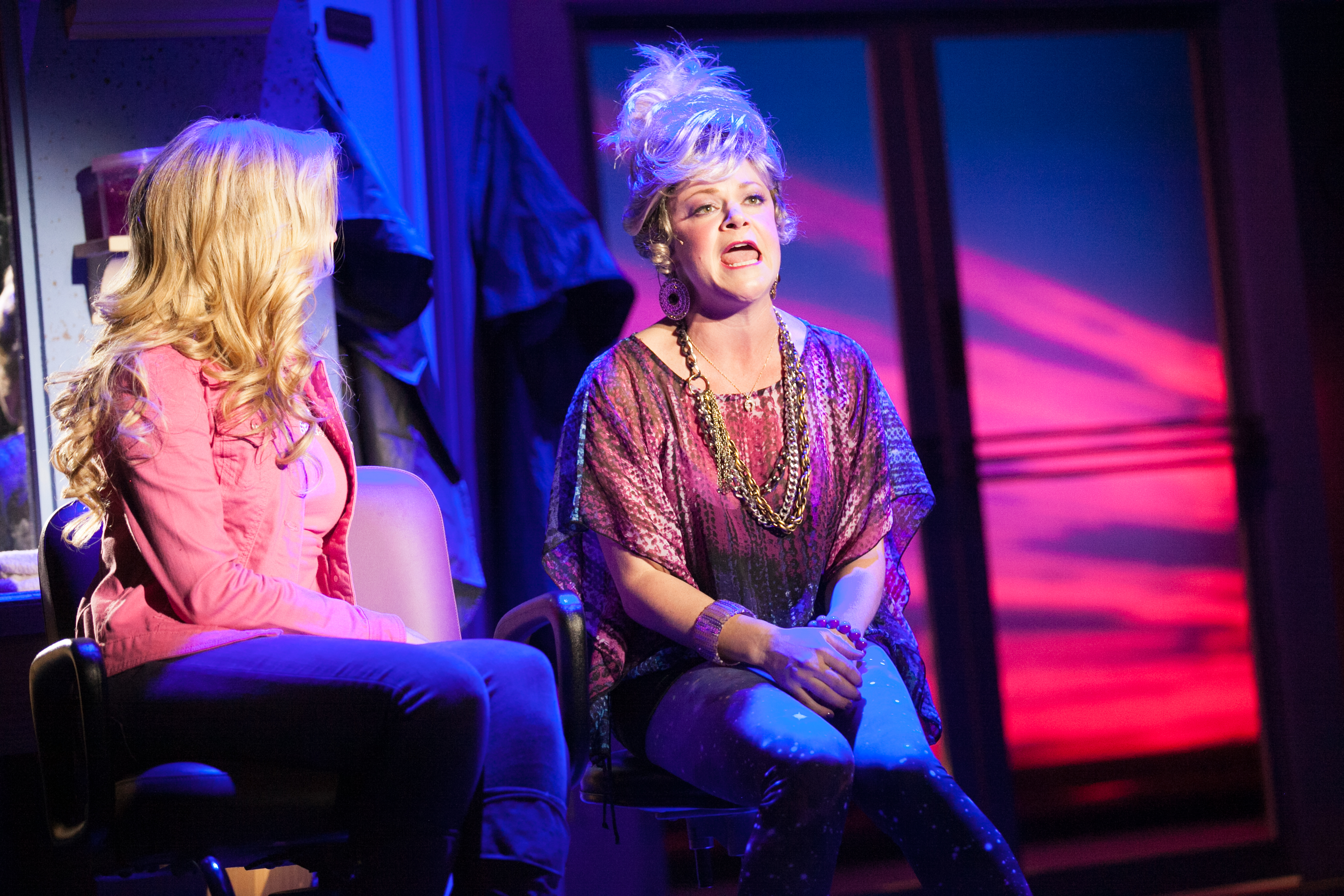 Matthew Benedict does an impressive job in the fairly thankless (and purposefully so) role of Warner Huntington III. With a strong, soulful voice, he shines in Act One’s “Serious” in which he breaks up with the Golden-tressed leading-lady just when she was expecting him to propose. (“But Richard Simmons was my neighbor!” she protests when met with the idea that she might not be good enough for his blue-blood East-Coast ‘pedigree’.)
