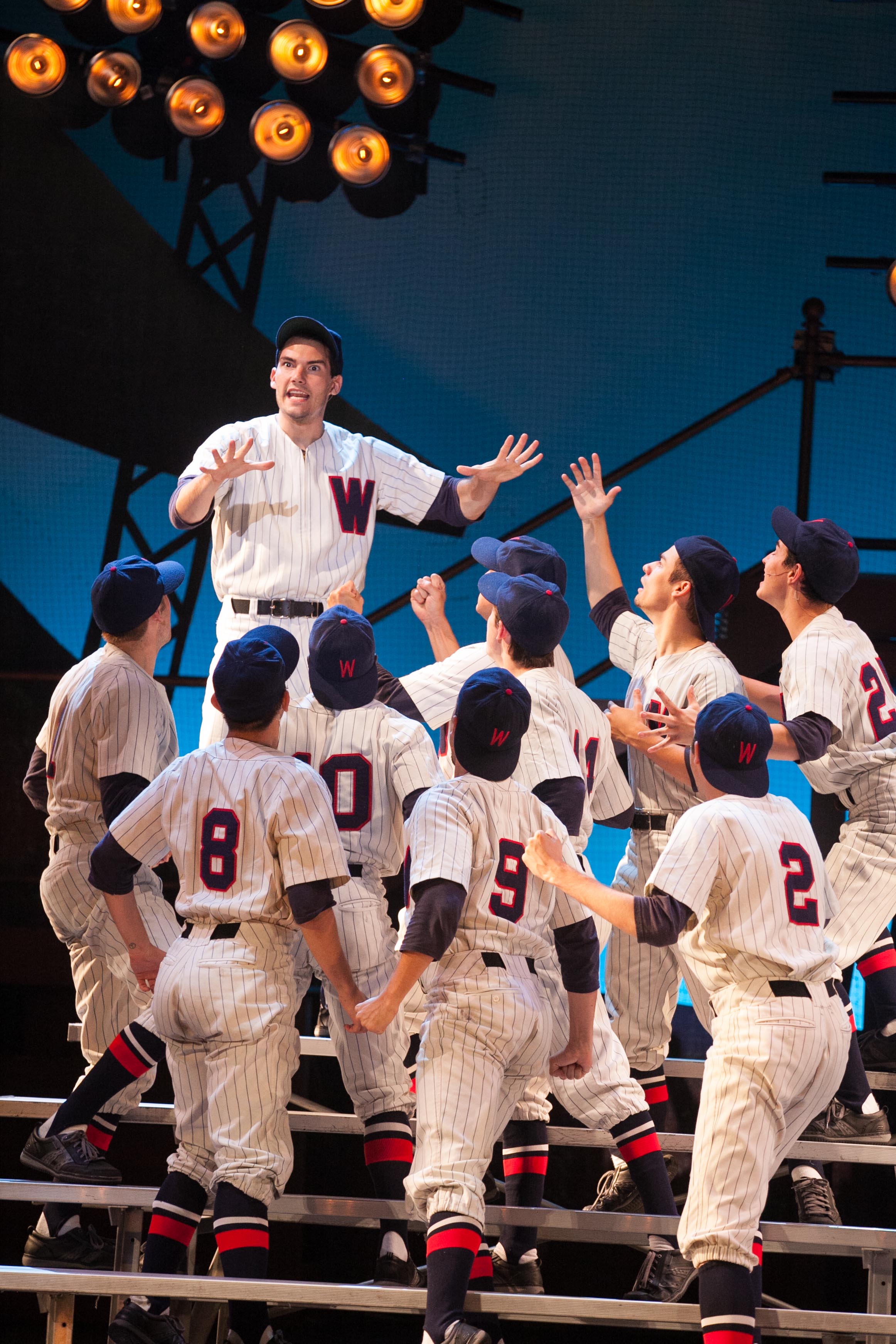 “Those Damn Yankees! Why can’t we beat ‘em?!” exclaims Joe Boyd at the start of “Damn Yankees”–the classic musical performing at the landmark “Plummer Auditorium” in Fullerton California. Produced by 3-D Theatricals, the show opened on July 12th for a three-week run before moving to “The Redondo Beach Performing Arts Center” in Redondo Beach California. Based on Douglass Wallop’s novel “The Year The Yankees Lost The Pennant”, the story is a delightful updating of the old “Faustian” legend—this time concerning what one long-suffering fan of the “Washington Senators” would do to help his team win. With a book by Wallop and theatrical giant George Abbott, and featuring music and lyrics by Richard Adler and Jerry Ross, the show first debuted on Broadway in 1955 and went on to win seven “Tony Awards” including “Best Musical”. Now, given the first-class, ‘Pennant-winning’ treatment 3-D Theatricals has given this classic bit of Americana, is it’s easy to see why!