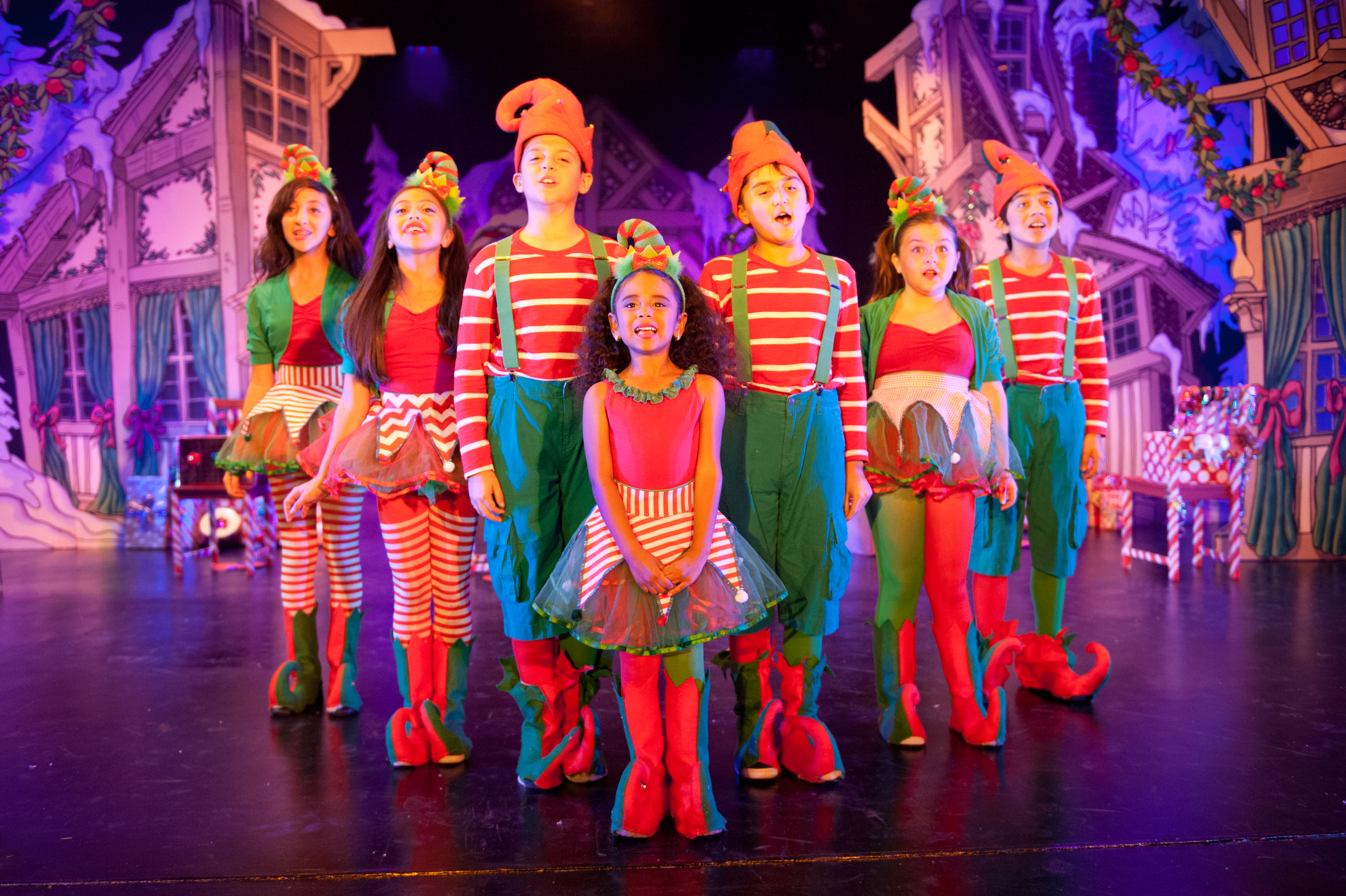 “It’s beginning to look a lot like Christmas, soon the bells will start…” Chris Harper is “Elroy” with Shayna Gayer (L) as “Hope” & Sophia Scarsi (R) as “Holly”