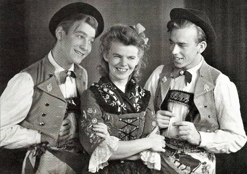Also making their outstanding mark here are several other performers who themselves went onto to substantial show-business careers–including Wally Cox, who does surprisingly well as the goat-herd “Peter”, and the delightfully puckish Robert Clary (perhaps best known today from his role as the diminutive Frenchman “LeBeau” on TV’s “Hogan’s Heroes”.)