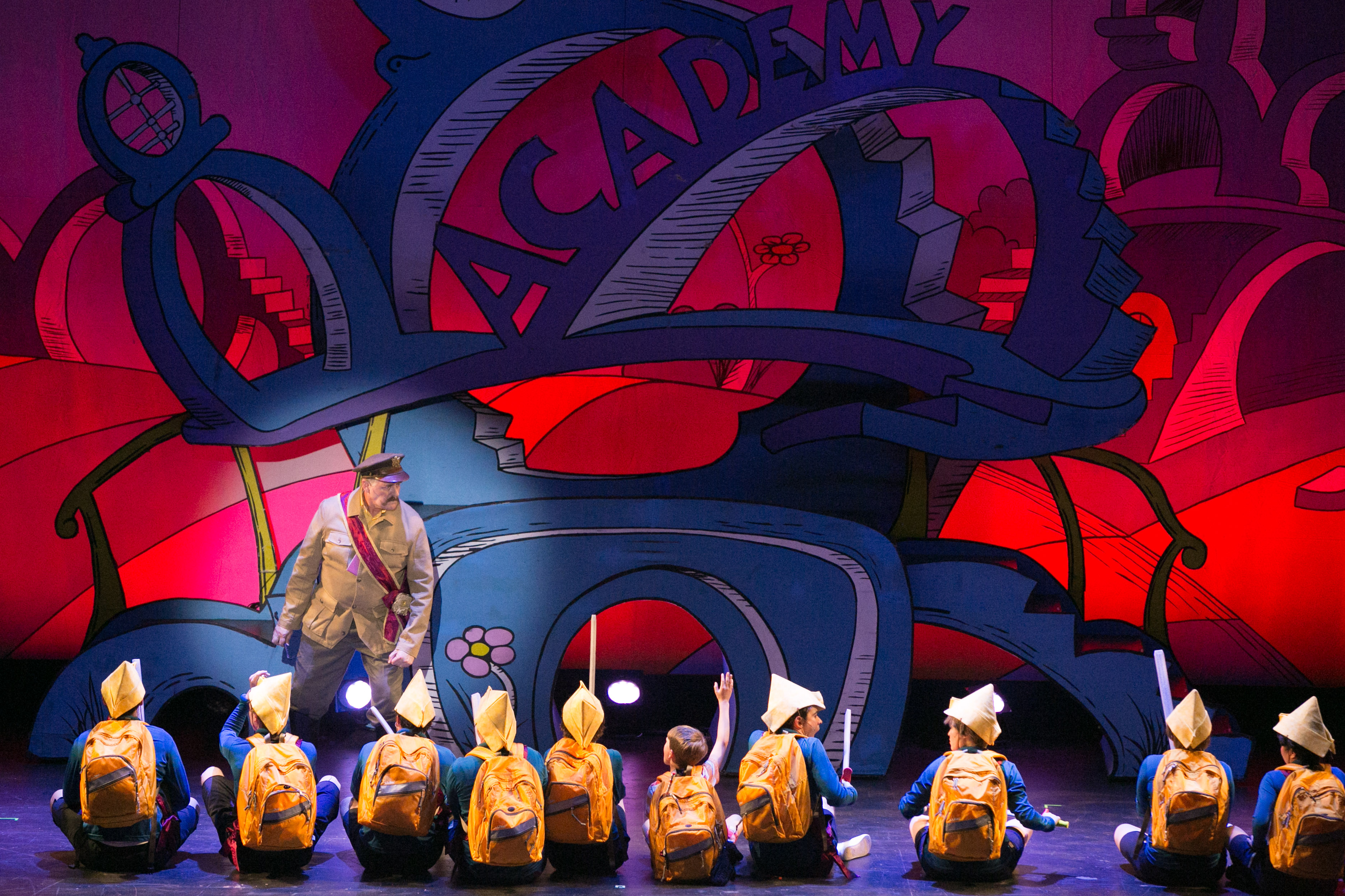 Directed and Choreographed by multi “LA Ovation Award” winner David Engel, who was part of the original Broadway company, he perspicaciously plays to all the book’s strengths, keeping the action going at a near whirlwind pace, which makes those times when things do slow down a bit all the more meaningful. Likewise, his choreography (and there is plenty of it) is expertly based on Broadway’s original staging by Kathleen Marshall. Movement here runs the gamut from 50’s “sock hop” dances to 80’s Hip-Hop; “Choreographer” Engle has found numerous ways to open up and enliven the proceedings through some inspired stepping, and even some remarkable mid-air maneuverings (with the captivating assistance of “Aerial Choreographer” Paul Rubin!) The sets by J. Branson and George Bacon’s costume design (both courtesy of “Music Theatre Witchita”) all effectively conjures up the look and feel of a Dr. Seuss illustration, and all are F-A-N-T-A-S-T-I-C; but it’s the lighting design by Jean-Yves Tessier that truly makes the show come alive with bold, vibrant, colors and some rather amazing lighting effects (particularly in the second act.)