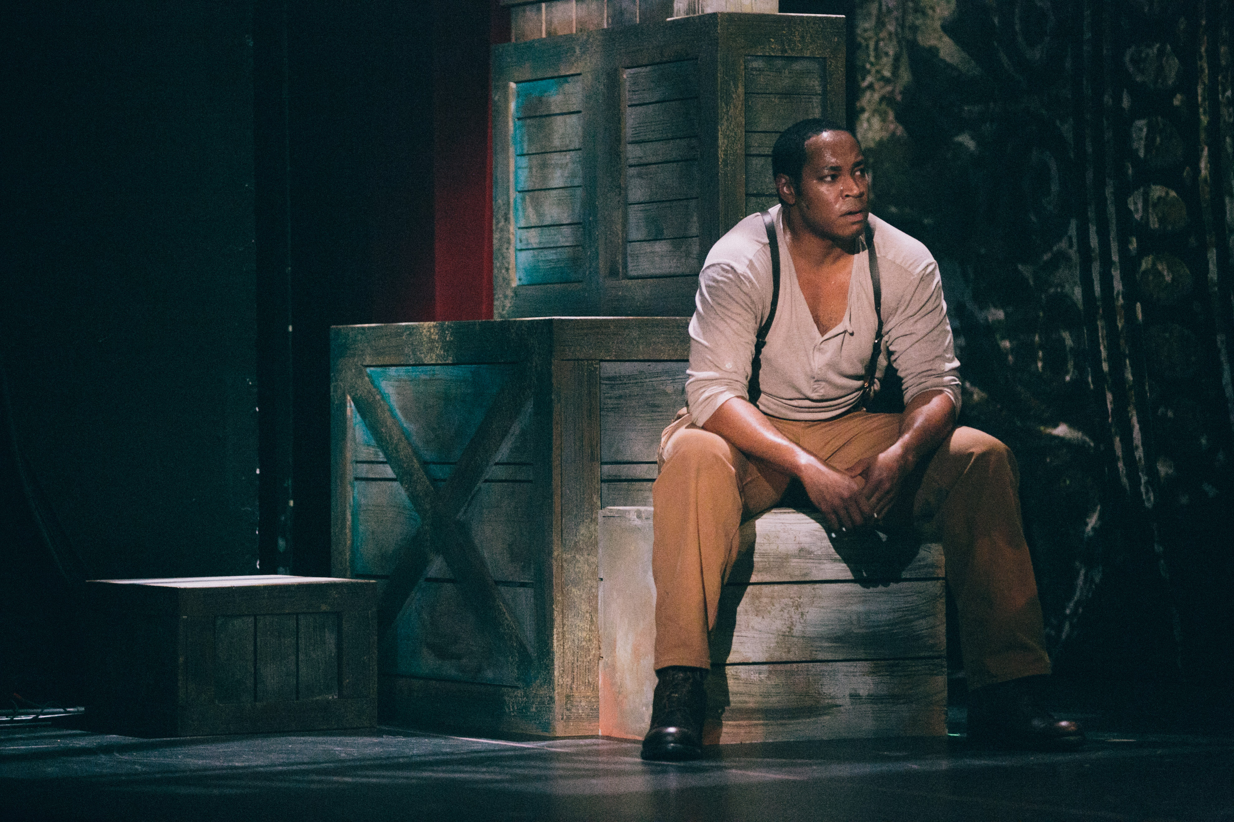 Jay Donnell too, as fellow side-show performer and the sisters’ loyal friend and protector, “Jake”, is a down-right revelation. Not only does he have an awesomely Atlantean and soulful voice, he also wields the passion to deliver it to the back of the house when required. Donnell absolutely electrifies with his part at the start of “The Devil You Know”, but he really brings down the house with his dynamic Act Two benediction, “You Deserve To Be Loved” as he fervently makes known his long suppressed feelings for Violet. Elevating this song into a bona fide “aria” (for that’s how much raw power he packs into it) Jake begs her not to go through with a sham marriage to Buddy who really can’t love her the way he truly does. This number also reveals one of the more heart-wrenching plot elements: if only she could see beyond the ingrained racism of the time, Violet could at last experience the one thing she desires most of all—a husband who deeply cares for her; but fearing society’s reaction to an inter-racial marriage, she condemns herself to a life devoid of any love at all.