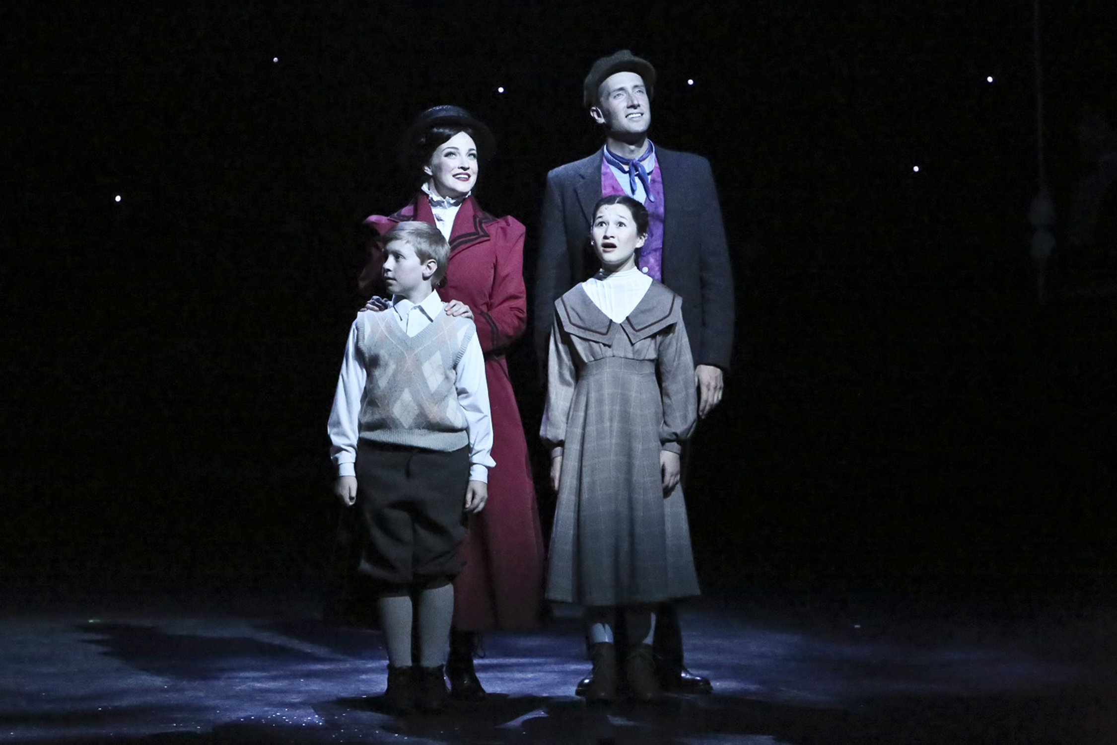 “Broaden your horizons–open different doors: You may find a ‘you’ there that you never knew was yours!” (Brandi Burkhardt is “Mary Poppins” & Leigh Brian Wakeford is “Bert” with Logan J. Watts as “Michael” and Noa Solorio as “Jane”)