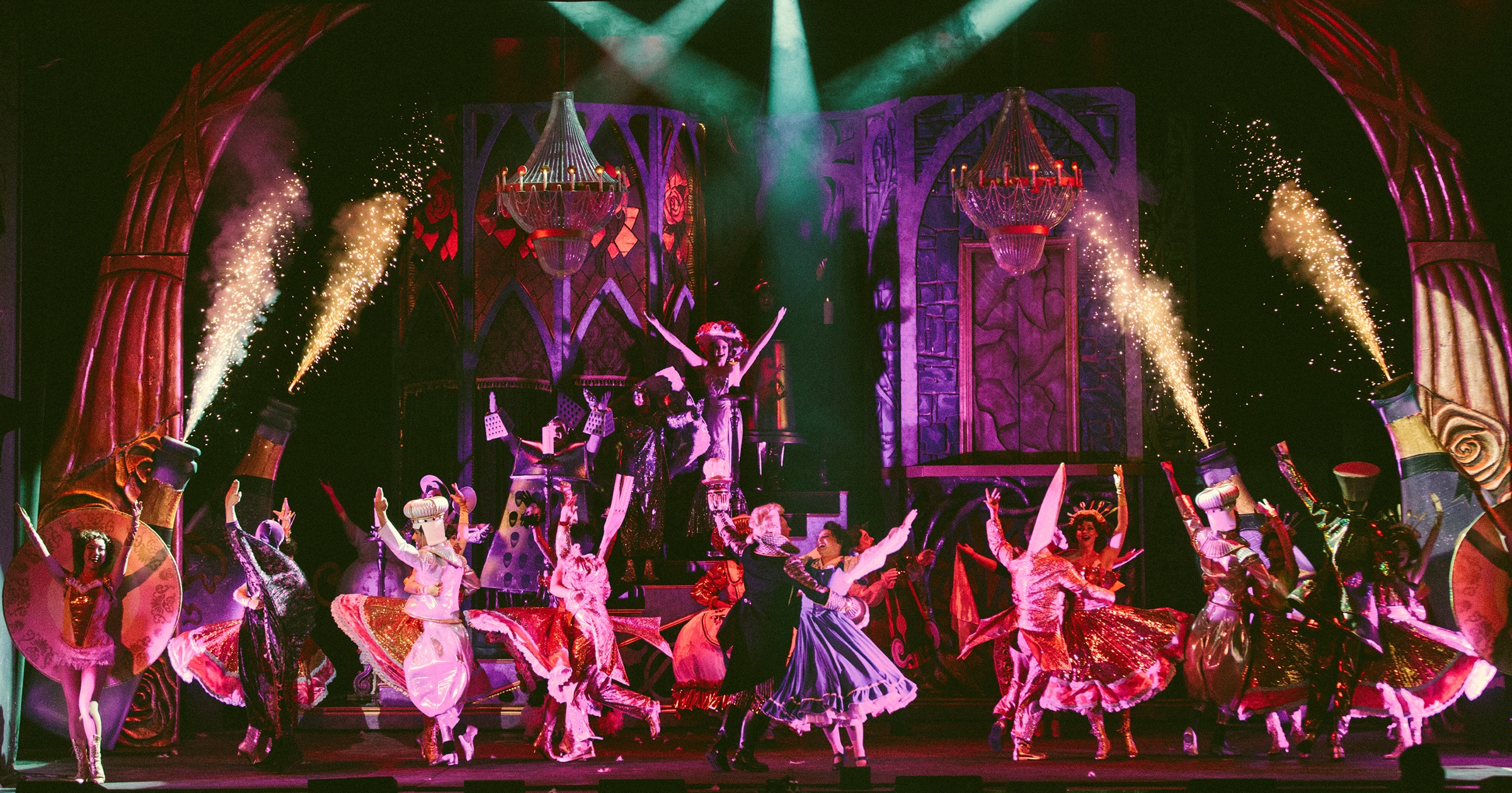 Directed by 3-D Theatricals’ own T.J Dawson with Assistant Director, Ryan Ruge, the choreography is by Billy Sprague Jr. On opening night, Dawson welcomed audiences, confiding that this latest endeavor is, admittedly, a potential ‘beast’ of a production with many “moving parts’ and disparate elements to contend with all at once; in spite of that they all make everything look so effortless, keeping the proceedings flowing smoothly—swiftly even. The Director also pointed out that the show boasts a full 18 piece orchestra “and that’s rare even for Broadway these days,” he proudly noted, and every instrument (under the expert leadership of Julie Lamoureux) is brilliantly put into the service of this remarkable score. If the movie may have been a little thread-bare musically in places, rest assured that all of the additional songs written expressly for this stage version are definite improvements on the original film. In fact, few tunes featured in a Disney’s large and auspicious catalog are as clever, funny, stirring, or touch the human condition better than those heard here! While the first act acquaints us with all the players and sets up the situation, it’s after intermission that we’re really drawn in, much to the credit of Dawson and his cast. By then, we sincerely care about these characters and the story they’re telling—and the lavish romantic ending actually works much better on stage than in any cartoon. Then again, among the more memorable aspects of this show are the absolutely incredible technical contributions that make it all come alive—and just as significantly, have us believing it all! These include prodigious sets, innovative costumes, lively light-projections, and plenty of pyrotechnics. For these reasons, special (and each superbly warranted) kudos go out to Mela Hoyt-Heydon for her supremely imaginative costume designs, which are complemented fully by Denice Paxton’s vibrant and often otherworldly Make-up designs, while Peter Herman’s amazing wigs dramatically ‘top’ each character off flawlessly. Sets and props come courtesy of Gateway Productions and astute Disney fans may even find that they reference a few notable Disney theme-park attractions here and there (quite suitable given the theater’s close proximity to “Disneyland”!)