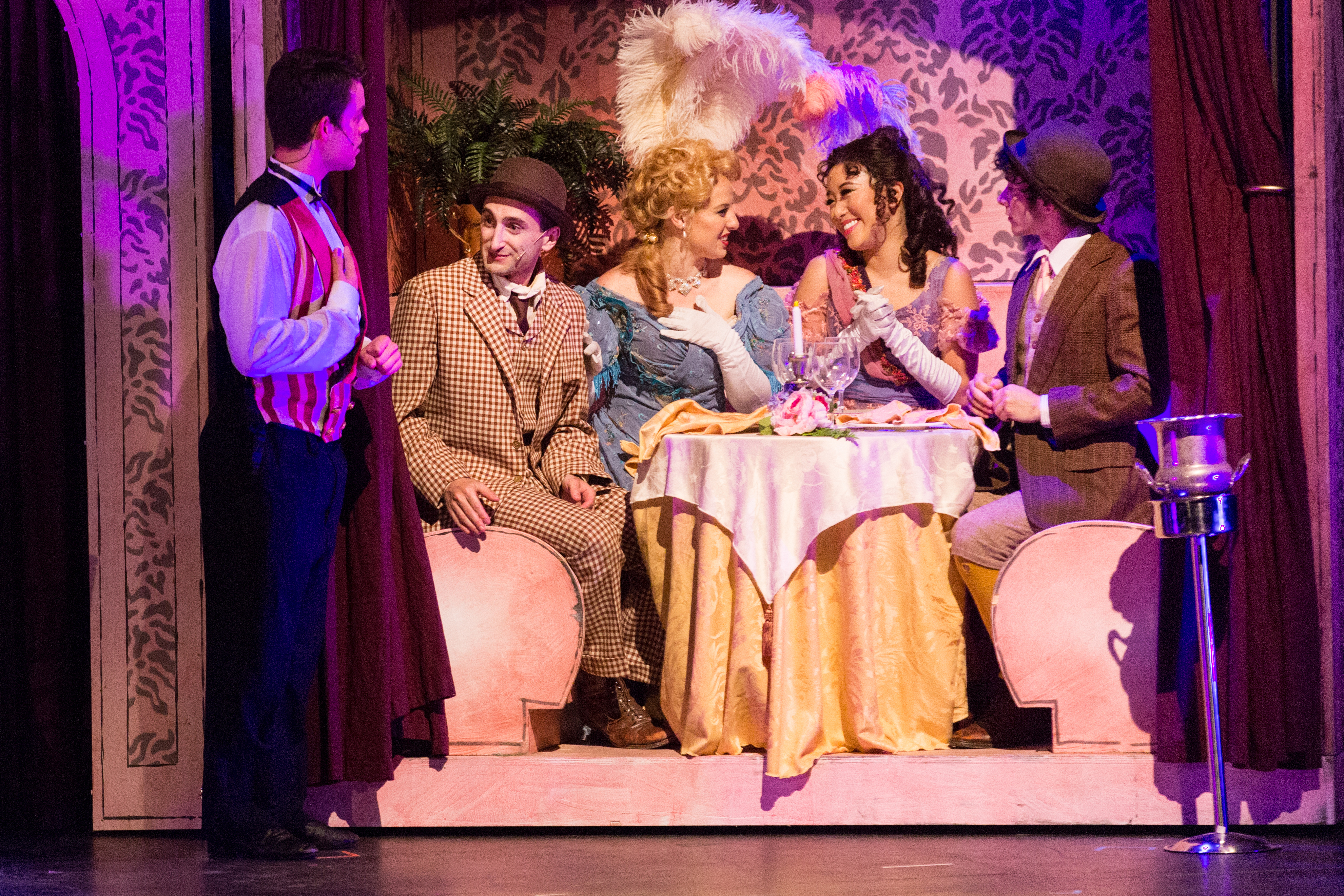 “Exercise your wildest whims tonight—we are out with ‘Diamond Jims’ tonight!” Afton Quast as “Irene Malloy” and Grace Yoo as “Minnie Fay” are expecting an “Elegant” evening with Gary Patent as “Cornelius Hackl” and Chris Villain as “Barnaby Tucker” in 3-D Theatricals’ “Hello Dolly!”