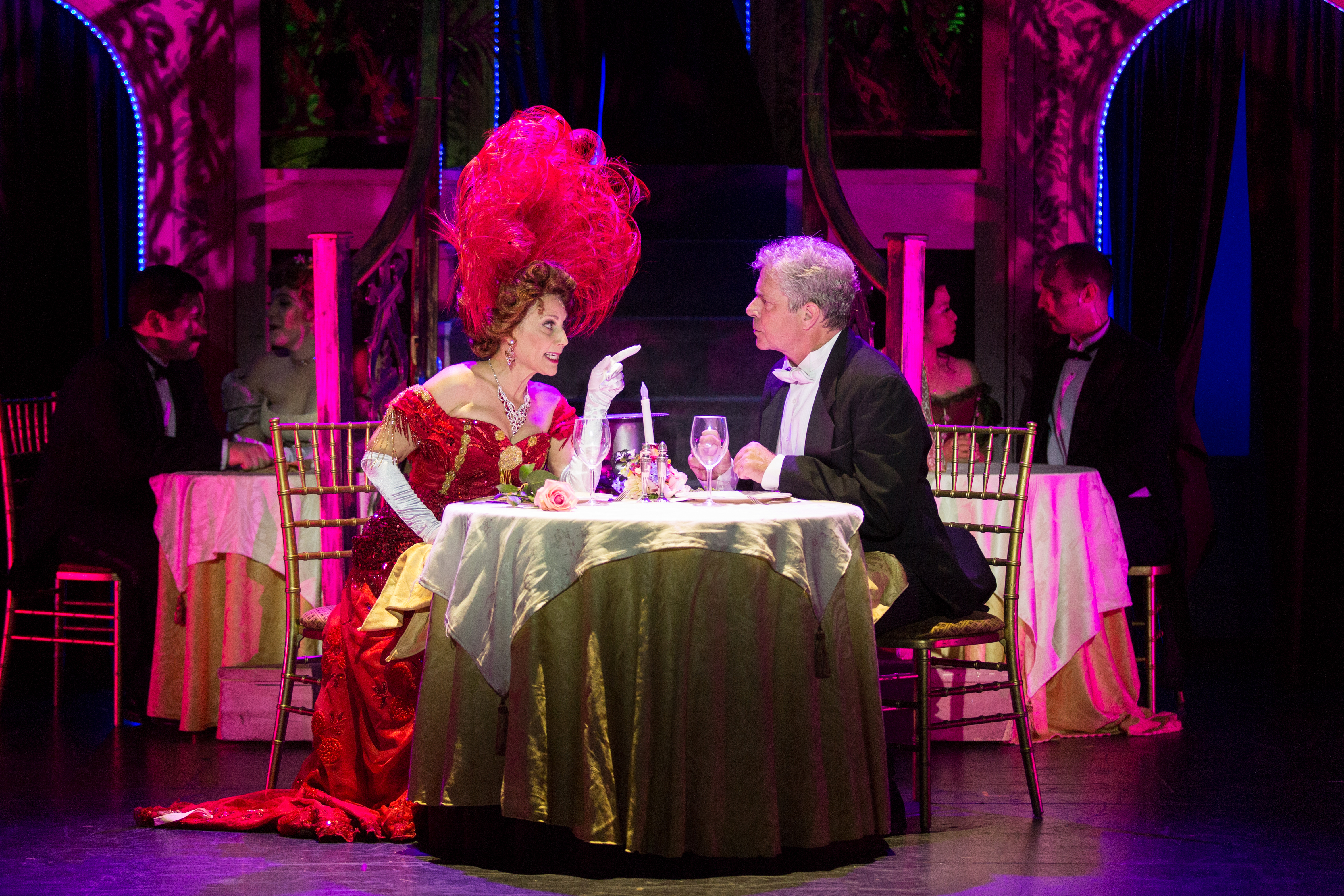The result is a near show-stopper early on! Just after, “Put On Your Sunday Clothes” also proves to be an A-Plus group endeavor, while after intermission, the title number is a pure delight (—also featuring some awesome harmonies from the chorus of waiters.) Everything builds to a huge splashy finale such as only a Jerry Herman show can provide! At the same time, Leslie Stevens’ choreography is one more major plus this production can boast. Always lively and clever, she employs numerous styles of dance in the various production numbers—imaginatively re-purposing a few one might not readily think of fore a show set in the 1890s, like combining a jig with a polka in the midst of the vivacious “Dancing” number, instantly making it a fun, frolicsome feel-good interlude; or including a brief but buoyant tap-break for Dolly and her throng of admiring waiters before they all proceed into a dapper kick-line in the lavish titular number. Another uniquely crafty device she implements is dispensing shorter bits of movement to essentially ‘break up’ the longer scenes (This is based on a smaller ‘drawing room’ comedy after all!) most notably in the Harmonia Gardens sequence. So too, the big Act One closer, “Before The Parade passes By” becomes an out-and-out crowd-pleaser (complete with Vandergelder himself marching as part of “The Yonkers Moose Lodge Marching Band”) thanks in large part to these little terpsichorean experiments that pay off in hugely entertaining ways.