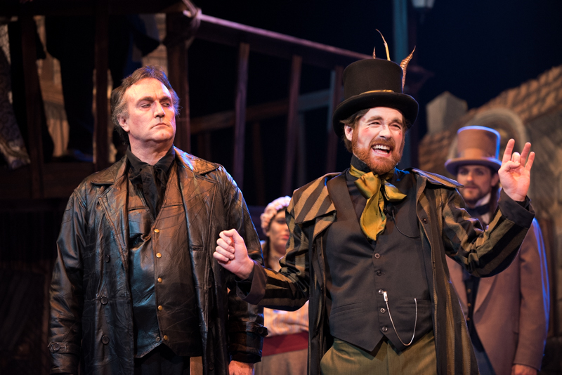 “Gather around Signorini, Signori, you looka a man who have had-a da glory to shave-a da Pope!” David Stoneman as “Sweeney Todd” challenges Alex Bodrero as street-barber “Adolfo Pirelli” to a test of skill in “One More Productions’ “Sweeney Todd, The Demon Barber Of Fleet Street”