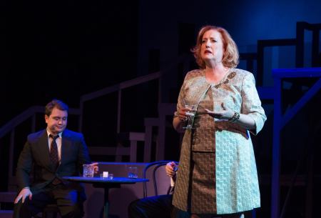 “Do you know we are suddenly at an age where we find ourselves too young for old people and too old for the young ones. We’re nowhere! We ARE the Generation Gap!” Janet Krajeski as “Joanne” rails against “The Ladies Who Lunch” (and everybody else) as Paul Luoma as “Robert” listens, in “The Morgan-Wixon Theatre’s “ Production of “Company”