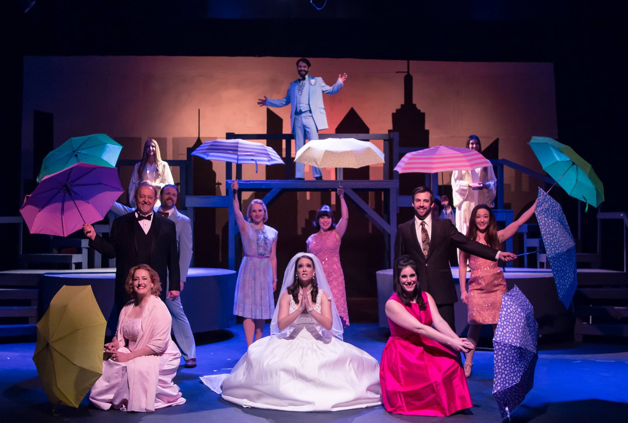 “Bless this Bride, totally insane—slipping down the drain; and bless this day in our hearts, as it starts to rain…” Amy Coles as “Bride-to-be” “Amy” tries desperately to convince herself that she’s “Not Getting Married Today” with the cast of “The Morgan-Wixson Theatre’s” Production of “Company”