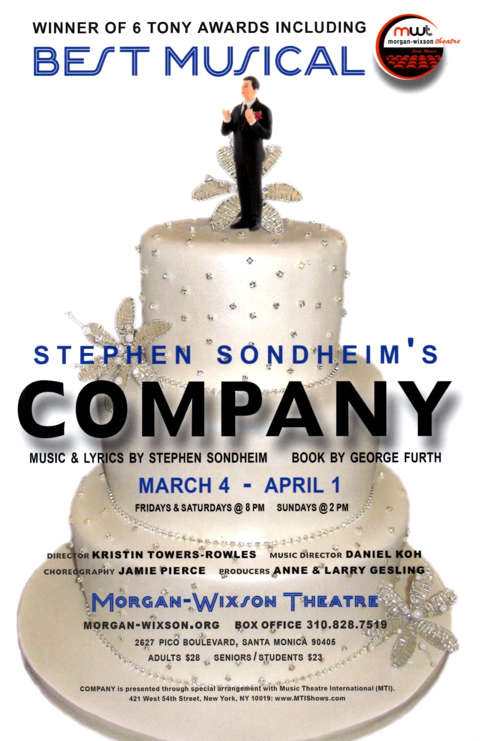 “The Morgan-Wixon Theatre” Presents ”Company” March 4th-April 1st, 2017 in Santa Monica California; http://www.morgan-wixson.org