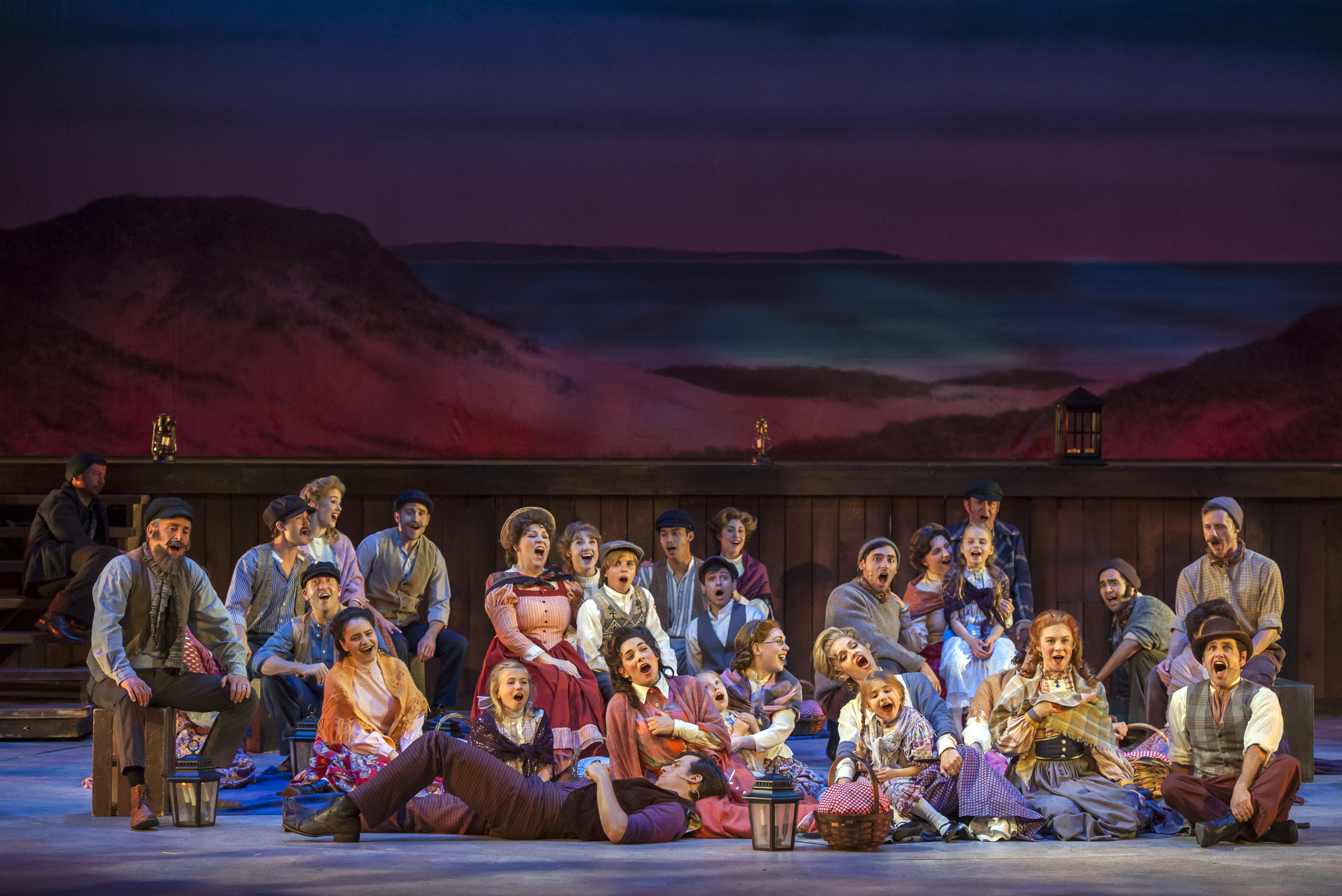 “Our hearts are warm, our bellies are full, and we are feeling prime. This was a real nice clam-bake, and we all had a real good time.” The company enjoys the satisfaction of “A Real Nice Clam-bake” in “Musical Theatre West’s” production of “Carousel”