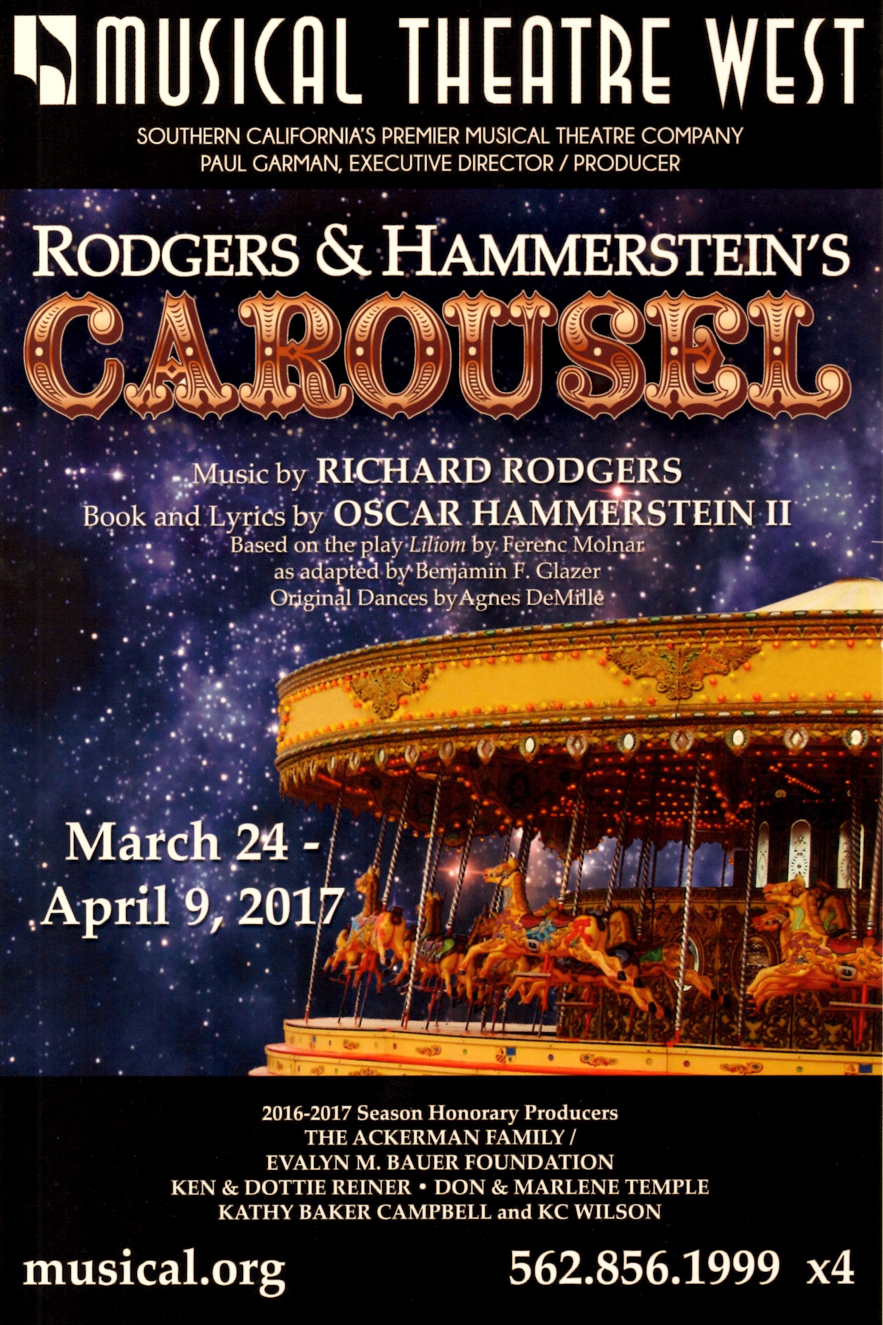 “Musical Theatre West” Presents Rodgers & Hammerstein’s “Carousel” March 24th –April 9th , 2017 At “The Carpenter Center For The Performing Arts” In Long Beach CA. (www.musical.org)