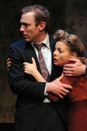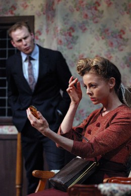 “I’ll explain that to you some time darling—the close connection between eroticism and religion” J.B. Waterman as “Mortimer Brewster” is discovering that Liesel Kopp as his new Fiancée, “Elaine Harper” is no little lamb herself in “The Odyssey Theatre Ensemble’s Production of “Arsenic And Old Lace”
