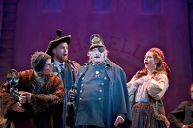 Acting and Performance-wise, too much is definitely not enough for a show and script like this one, yet wisely the cast never over-do it so much that it appears strained or overtly campy. Indeed, the awesome dancing, and energetic chorale work are exhibited right from the opening in “The Happiest Town In Town”, as a brightly dressed band of peasants from the little village of “Transylvania Heights” are ‘celebrating’ the passing of their little burgh’s one noteworthy (and notorious) citizen, the much-feared “Dr. Victor Frankenstein” —whom they believe is the last of the dreaded “Frankenstein” line. Nonetheless, the revelries are cut short by the municipality’s Chief Constable, “Inspector Kemp” (who once tangled with the doctor’s legendary creation—and it ended up costing him an arm and a leg—literally!)