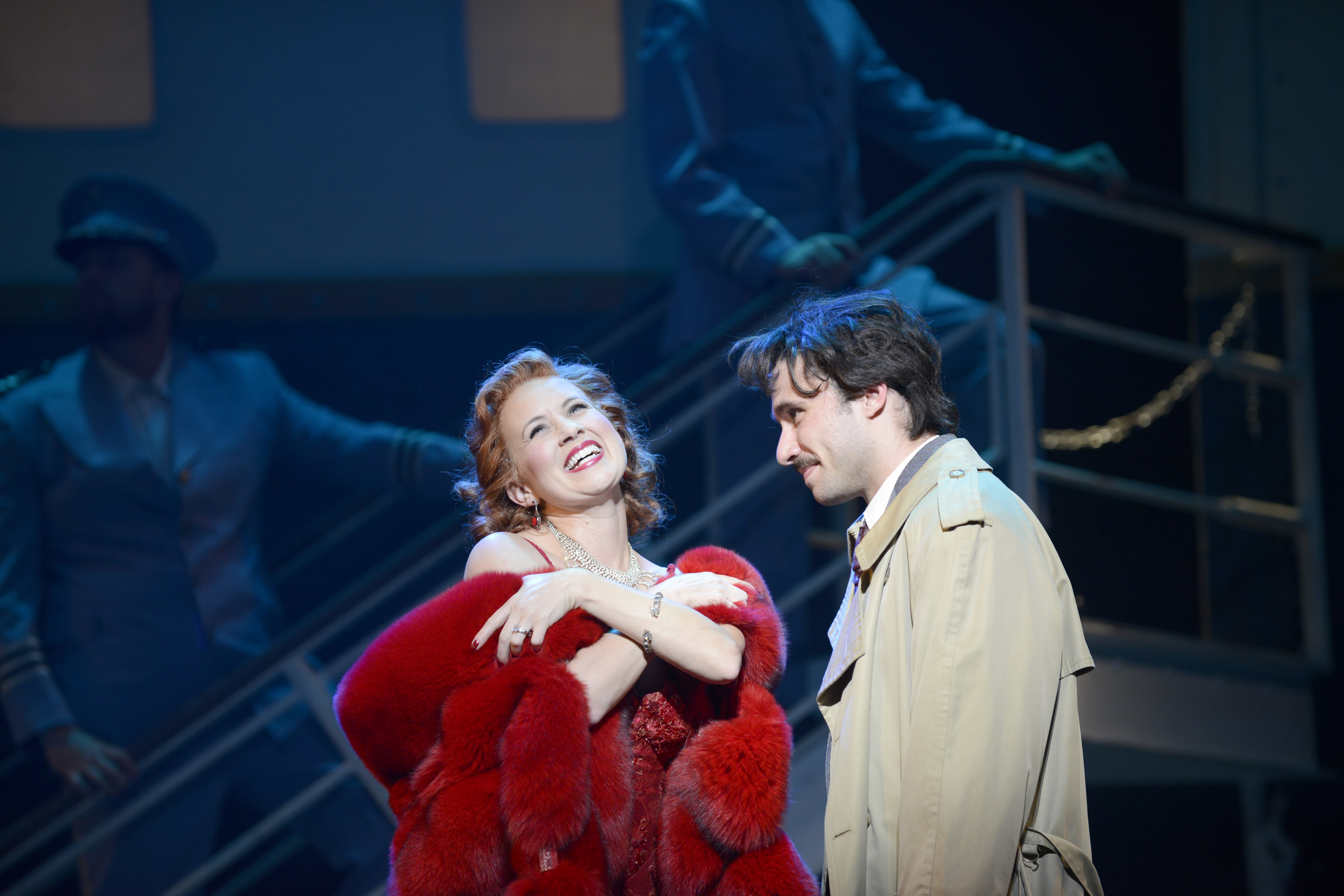 “Oh, how could fate tear us apart like this? Me, your adorable madcap fiancée, in a Park Avenue penthouse, dancing til’ dawn with one good-looking guy after another; and you, all alone, on the stormy seas, desperately clinging to your mast-head.” Ashley Fox Linton as “Elizabeth” bids bon voyage (from a distance) to Dino Nicandros as her frustrated fiancé, “Frederick” In 3-D Theatricals’ Production Of “Young Frankenstein”