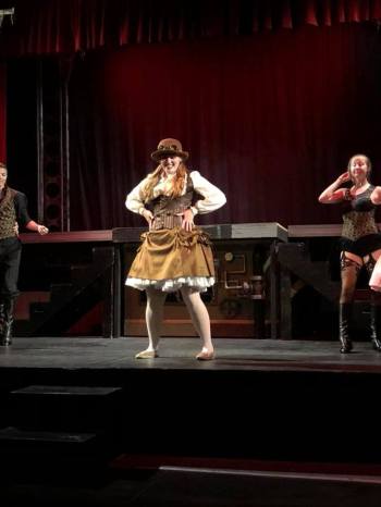 “Well I was walking down the street, just a-havin’ a think when a snake of a guy gave me an evil wink! He shook-a me up, he took me by surprise–He had a pick-up truck and the Devil’s eyes! He stared at me and I felt a change: Time meant nothin’, never would again!” From ‘Time Warp’ to ‘Time Steps’, Audrey Curd as “Columbia” shows off some fancy-maneuvers (–and she doesn’t put a foot wrong!) in “The Maverick Theater’s” 2018 Production of “The Rocky Horror Show”