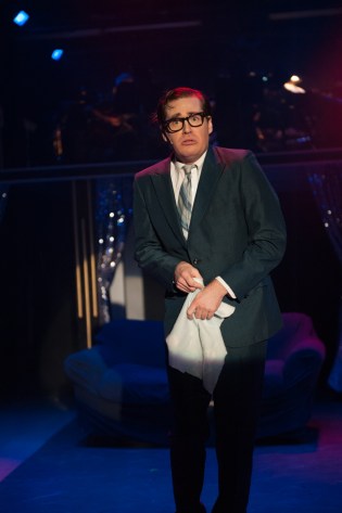 Edward also incandesces with “Heil Me”—seen in the context of the show-within-a-show once “Roger” is called upon at the last-minute to step into the ‘passing for straight’ lead, once Franz has stumbled and broke his leg (this, after Max has cavalierly dared to breach the theatrical ‘taboo” of wishing him “Good Luck” on Opening Night!) What’s more, Peter Crisafulli’s refreshing turn as the shamelessly flashy, flamboyant and fabulous, “Carmen Ghia” is charmingly unique as he makes this character entirely his own—not some carbon-copy impersonation of Broadway’s Roger Bart (who himself created the role basing it almost entirely on that originated on the big-screen!) On this occasion, Crisafulli steals practically every scene he’s in—and in all the very best and most satisfying ways. He categorically prevails with his contribution to “Keep It Gay”, as well as later when leading the dance ‘audition’ for “Springtime For Hitler” by attempting to teach a dance combination to coterie of clumsy chorus boys with more left-feet than they even have legs! (“Arabesque, prepare—pirouette and twirl; Goose-step, Goose-step, waltz clog and kick!” he cajoles them in a scene reminiscent of “A Chorus Line”, but with a gang of inept, ungainly and anything but graceful auditionees!) Brandon Taylor Jones too, showcases his incredible voice to exceptional advantage as the Brown-shirted Nazi “Show-Tenor” at the center of the whole “Spring Time For Hitler” spectacle. Race Chambers also supplies terrific support as “Leo’s” boss, “Mr. Marks”—played in this instance as an abusive and over-privileged adolescent punk who savors every excuse to belittle his overworked staff of human-calculators. “Remember you’re a NOBODY!” he shouts at Leo; “A ‘P.A.’! I am a C.P.A.–a CERTIFIED Public Accountant! A rank that a miserable little worm like you can NEVER hope to achieve!”
