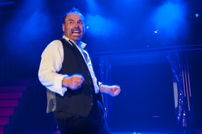 “Just like Cain and Abel you pulled a sneak attack! I thought that we were brothers then you stabbed me in the back! (Betrayed! Oh boy, I’m SO betrayed!) Like Samson and Delilah, your love began to fade–I’m crying in the ‘hoosegow’, You’re in Rio getting laid!!!” At the show’s climax, Damien Lorton as “Max Bialystock” finds he’s really up the creek in One More Production’s “The Producers”