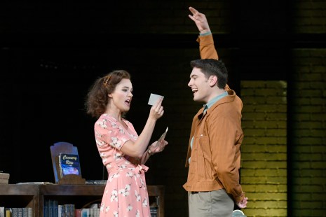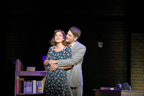 “When you get to Asheville, write me if you will; tell me how you’re doing, how it’s treating you…do you like your new job? Did you find a new love? Is it everything that you were dreaming of?” Paige Herschell as “Margo” tries to put on a good face when she hears that Taubert Nadalini as her longtime “crush” “Billy Cane” is leaving for “Asheville” in “Musical Theatre West’s production of “Bright Star”