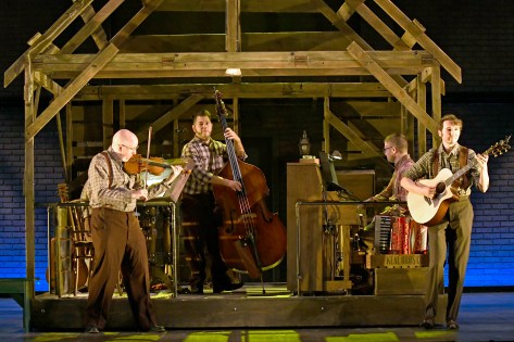 The on-stage “Blue-Grass” musicians raise a ruckus (along with some incredible Down-Home Style Music) in “Musical Theatre West’s” production of “Bright Star”