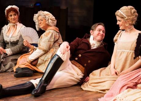 “Miss Woodhouse demands from each of you either one thing very clever, or two things moderately clever, or three things very dull indeed, and she engages to laugh heartily at them all!” Gavin Cole as “Mr. Frank Churchill” joins Mandy Foster as “Emma Woodhouse”, Shannon Page as “Miss Bates” and Sherry Domerego as her mother, “Mrs. Bates” for a picnic where witty wordplay isn’t the only game occurring in Jane Austen’s “Emma, The Musical” at “The Chance Theater” in Anaheim, CA.