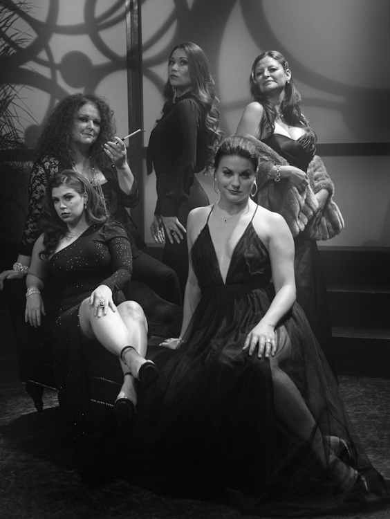 “Taken for granted–completely enchanted by you, small wonder it seems that my life’s made of dreams, and of wishes that never come true. I wouldn’t be lonely if I could be ONLY with you (…and you…and you…and you…)” Way more than just a number, Nicole Cassesso (Front Center) as “Luisa Contini”, Brittany Gerardi (L ) is “Carla Albanese”, Beth Hansen (Top L) is “Liliane Le Fleur”, Erika Baldwin (Standing Center) is “Claudia Nardi” and Adriana Sanchez (Standing R) as “Sarraghina” are the women of One More Production’s 2019 staging of “NINE”