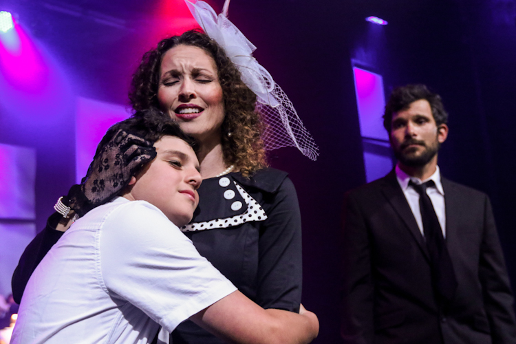 “Nine, Guido! Happy Birthday to you! Nine, Guido! So much to do! Time to start out on your own, open up to a brand-new world! Time to leave early dreams and live them instead.” Nickie Gentry as “Guido’s Mother” wishes Eliot DeLucia her ‘son’ “Little Guido” a Happy 9th Birthday as Ian Michaels as the ‘adult’ “Guido” recalls it all through the prism of memory in One More Production’s “NINE”