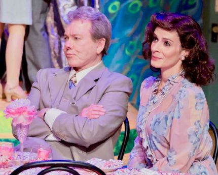 “This is even worse than I feared! The son is strange; the father is weird…to meet the wife, I’m actually afraid–I prefer that ‘Anne’ remain an Old Maid!” Rick Kopps as “Edouard Dindon”, along with Amanda Webb as his wife, “Marie Dindon” isn’t liking what he sees nor those he meets in “The Long Beach Playhouse’s” 2019 Mainstage Production of “La Cage Aux Folles”
