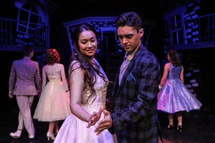 “Maria! Say it loud and there´s music playing. Say it soft and it´s almost like praying…the most beautiful sound I ever heard—Maria!” Brandon Taylor Jones as “Tony” shares his first dance with Erika Baldwin as “Maria” in One More Productions’ 2019 Staging of “West Side Story”