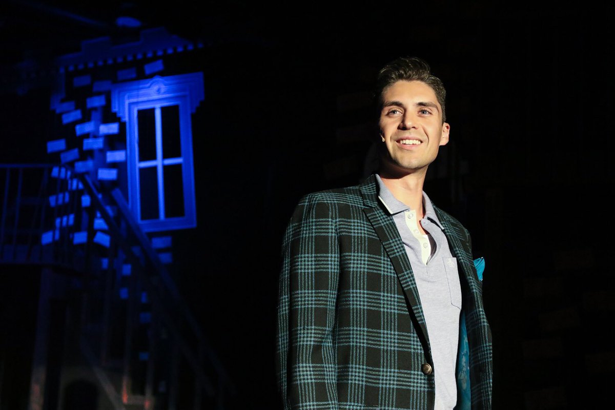 “It’s only just out of reach–down the block, on the beach, under a tree…I’ve got a feeling there’s a miracle due, gonna come true–coming to me!” Brandon Taylor Jones as “Tony” has the feeling that something good is coming his way in One More Productions’ 2019 Staging of “West Side Story”