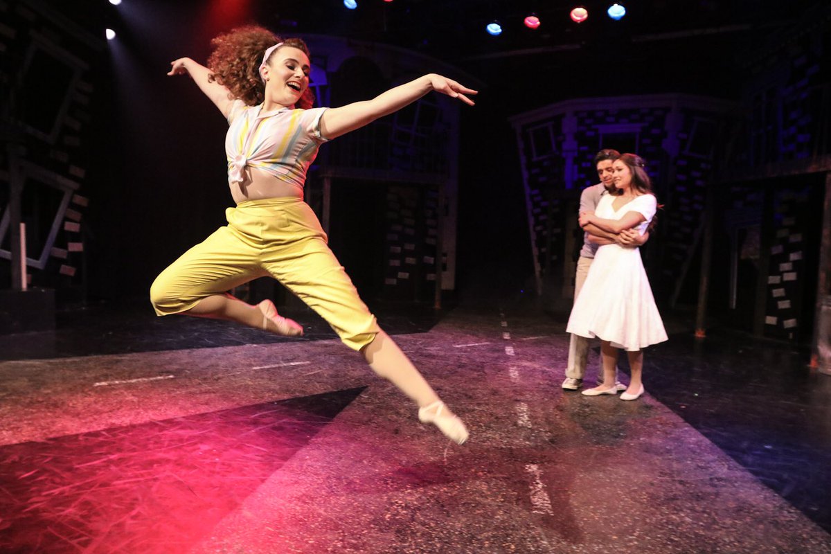 “Immigrant goes to America; Many ‘Hellos’ in America; Nobody knows in America, Puerto Rico’s IN America!” Nicole Cassesso as “Anita” joins the other “Shark’s” girlfriends in debating the pros and cons of coming to “America” in One More Productions’ 2019 Staging of “West Side Story”