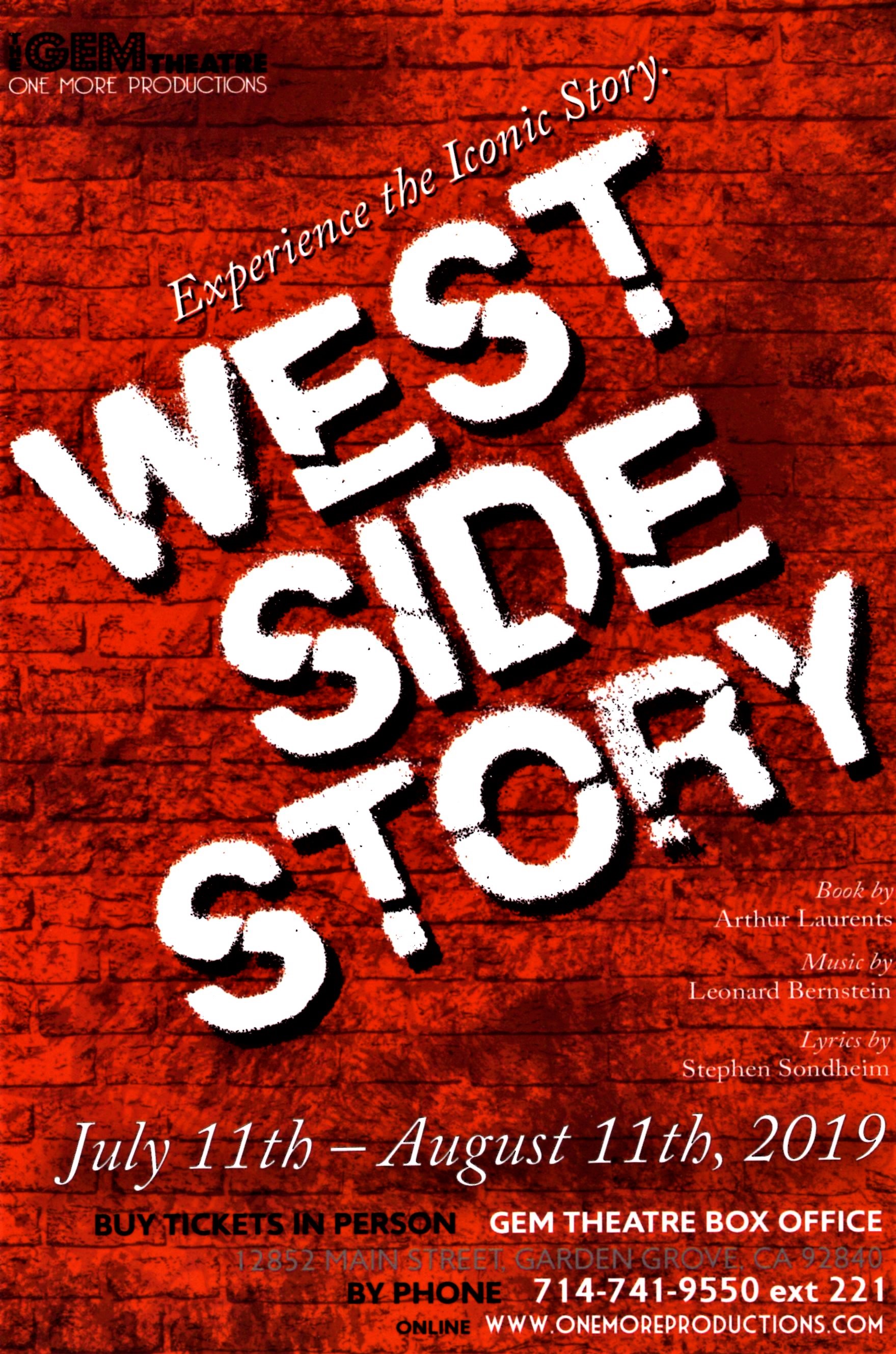 “One More Productions” Presents “West Side Story” July 11th —August 11th, 2019 At “The Gem Theatre” In Garden Grove California