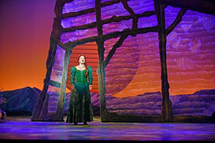 Throw in a wisecracking Donkey sidekick and a short-tempered (and equally short statured) bad guy, along with a plethora of familiar fairytale characters and you have the makings of a first-class musical! A tune-filled adaptation of the DreamWorks’ 2001 Oscar-winning animated box-office Bonanza, in 2008 “Shrek, The Musical” was improved and expanded for the Broadway stage featuring all new songs by Jeanine Tesori and a sidesplitting book by David Lindsay-Abaire (who also wrote all the Lyrics.) Six years ago, “3-D Theatricals”, Southern California’s foremost musical theater company produced the show in Fullerton CA. to meritorious acclaim; now, they’ve brought it back for an even “bigger, brighter, better” and more developed ‘re-envisioned’ production in their new home at “The Cerritos Center For The Performing Arts” in Cerritos, California. David F.M. Vaughn returns as the Director and Choreographer for this new ‘re-staging’ (with Leslie Stevens as Associate Director/Choreographer) and Musical Direction by Julie Lamoureux, who similarly serves as conductor for the stunning 12 piece orchestra. If you didn’t catch it the first time—this present ‘up-grade” positively rates in the ‘not to be missed’ category!