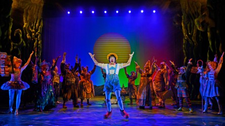 Reacquainting us with all the beloved characters from the ground-breaking motion-picture, each once again comes leaping to life on stage as this new production handily reminds us there’s waaaay more to the valiant Ogre’s story than what you’d expect to occur between the standard “Once Upon A Time” and “They Lived Happily Ever After”! Based on Willian Steig’s popular tome of the same name, (which itself is a spoof of all those wonderful old fairy-tales, nursery rhymes and children’s literary classics we all grew-up loving,) Lindsay-Abaire’s libretto is at turns funny, thrilling, and heart-felt—with a myriad of smart, “knowing”, laughs and witty sight-gags, while also interjecting some spot-on little nods to such other Broadway biggies as “Wicked”, “Funny Girl”, “Gypsy”, Once Upon A Mattress” and “The Lion King”. Having been a member of “Shrek’s” premiere Broadway cast as well as performing in the first national tour (where he played “Lord Farquaad”,) it’s safe to say Director Vaughn truly knows this show and possesses plenty of earnest affection for the material. Having also filled the same position in “3-D’s” previous version back in 2013, here his direction is fast paced and colorful—kind of like a frisky and forward-flowing whirl on a merry-go-round–with loads of big laughs, super-charged songs and light-hearted dance segments around every corner. You couldn’t find a fitter or finer show with which to introduce younger audiences to the joys of a top-flight theatre-going experience.