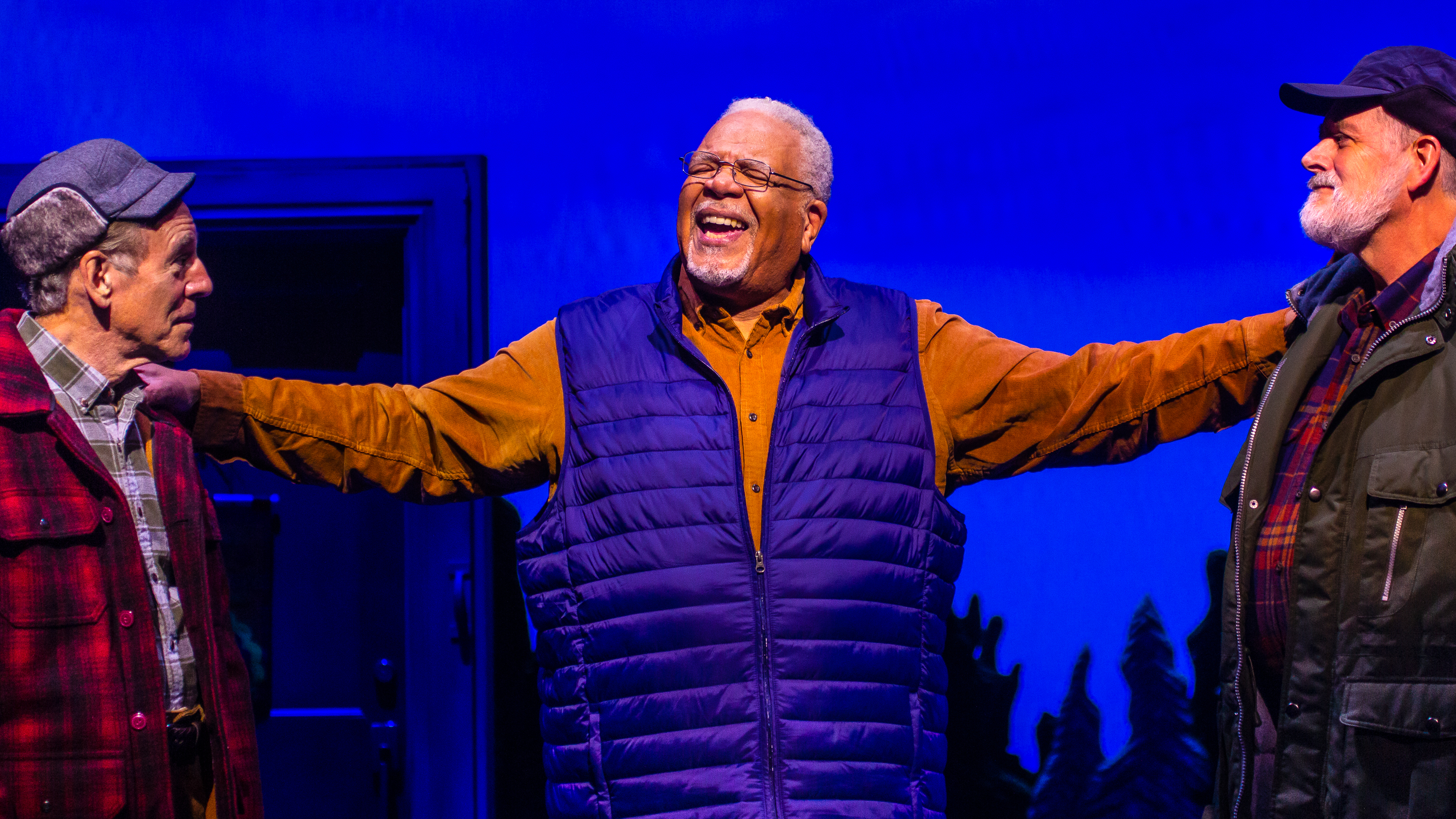 Ken Page (center) as “Chuck Barrels” croons to Mark Jacoby (left) as “John Gustafson” and Gregory North (right) as “Max Goldman” that there’s so much more to life than just being “old’ and “grumpy” in “The La Mirada Theatre For The Performing Arts” & McCoy-Rigby Entertainment’s West Coast Premiere Of “Grumpy Old Men—The Musical”