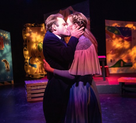 As in all great musicals, ‘True Love’ always wins out in the end: James Byous as “Leon Steponovich Tolchinsky” asks Clare Snodgrass as “Sophia Irena Elenya Zubritsky” to (at last) be his blushing bride in the “Open Fist Theatre Company’s” 2019 Premiere Production Of Neil Simon’s “Musical Fools”