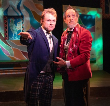 James Byous as “Leon Tolchinsky” suggests to Jason Paige as “Count Gregor” that he should adopt him as a son, which would make him a “Yousekevitch” himself, thus bringing the dreadful “curse” of stupidity to an end for all the people of “Kulyenchikov” in the “Open Fist Theatre Company’s” 2019 Premiere Production Of Neil Simon’s “Musical Fools”