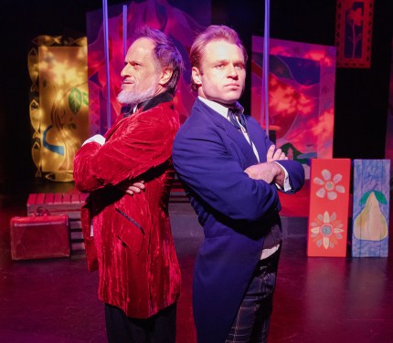 “You have NOT heard the last of me!” Jason Paige as “Count Gregor” (L) faces off against James Byous as “Leon Tolchinsky” (R) in the “Open Fist Theatre Company’s” 2019 Premiere Production Of Neil Simon’s “Musical Fools”