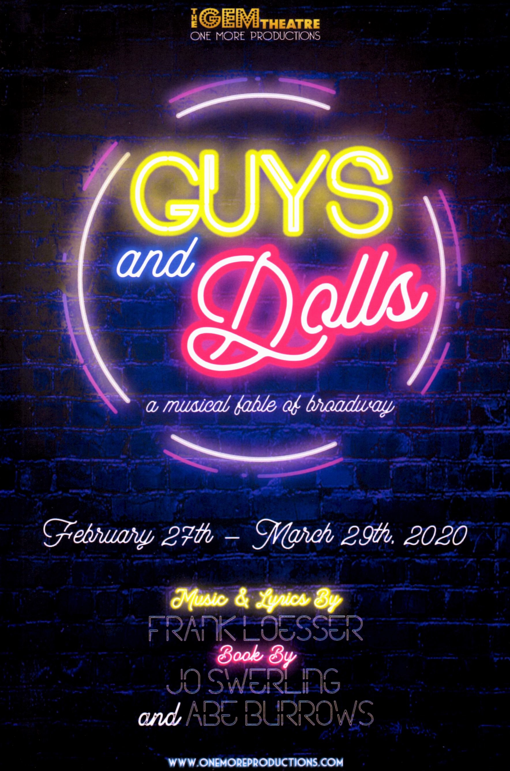 “One More Productions” Presents “Guys And Dolls” February 27th—March 29th, 2020 At “The Gem Theatre” In Garden Grove California http://www.OneMoreProductions.com