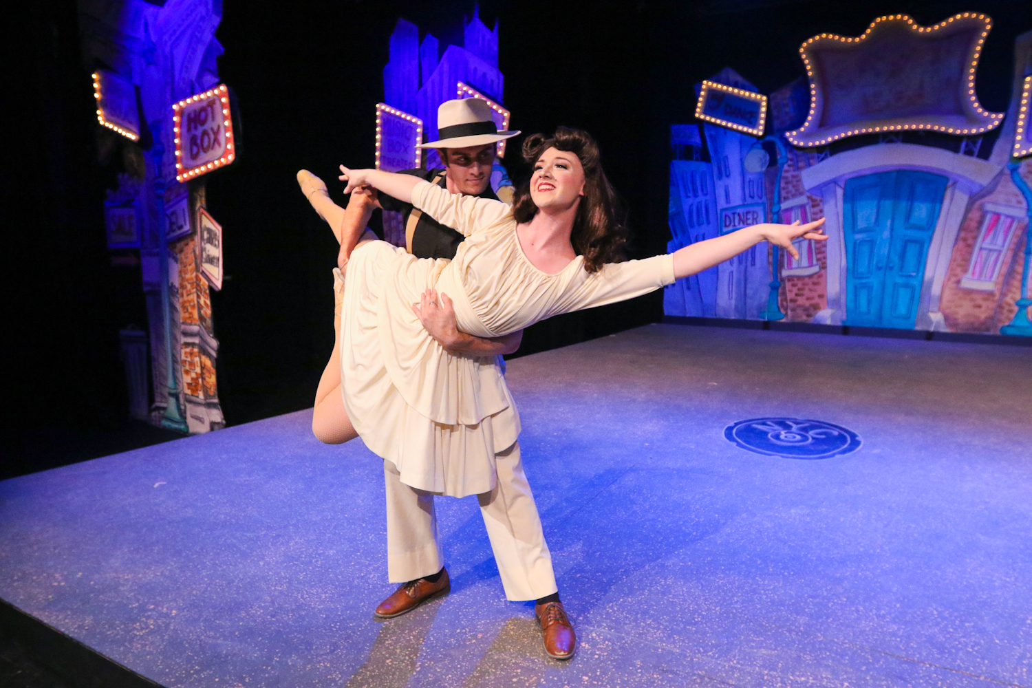 “How about a drink?” Featured Dancers Nick Seigel and Katie Walsh liven up the goings on with a spicy Salsa-inspired interlude to introduce a change of scene from “The Big Apple” to “Havana” in the in One More Productions’ 2020 Staging of “Guys And Dolls”