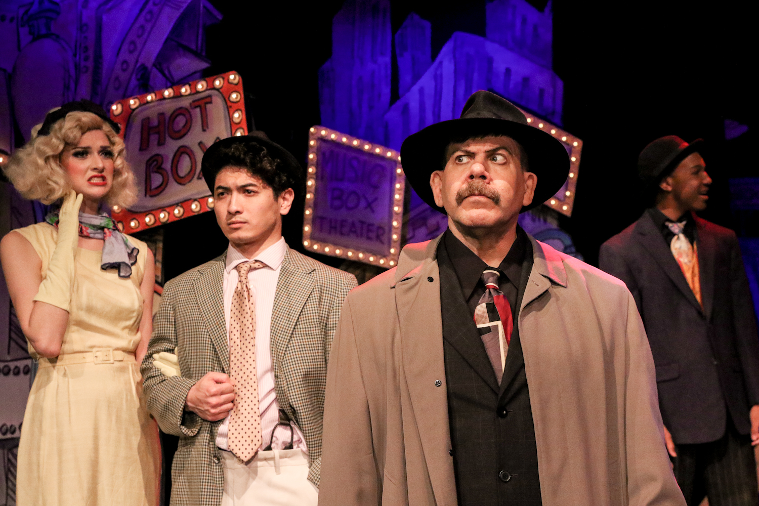 “What’s happenin’ all over? I’ll tell ya what’s happenin’ all over” (—or at least down Garden Grove way in Southern California): “One More Productions” –the Award-Winning Theater-Company housed in the landmark “Gem Theatre”, is presenting as their first show of 2020, the Frank Loesser blockbuster musical, “Guys And Dolls”! Billed as “A Musical Fable Of Broadway” this recipient of the 1951 Tony Award for “Best Musical” is based on several short stories by Prohibition-era Writer, Damon Runyan (who specialized in tales involving the often colorfully monikered New York City denizens of the day,) primarily “The Idyll Of Miss Sarah Brown” and “Blood Pressure”. With a book by Jo Swerling and Abe Burrows, the now-iconic score by American Theater ‘Legend’ Frank Loesser is jam packed with magnificent songs like “Luck Be A Lady Tonight”, “I’ll Know When My Love Comes Along”, “Sit Down You’re Rockin’ The Boat”, “A Bushel And A Peck”, and the buoyant title number. (How many other musicals can boast a roster of songs that has seen just about every tune heard having gone on to be a genuine American standard?) For this new staging, “One More Production’s” Co-Founder (and recent “Americana Award” Honoree for “Garden Grove Citizen Of The Year”,) Damien Lorton fulfills numerous functions including Director (working in conjunction with Co-Director Nicole Cassesso,) and Musical Director on top of taking on the co-starring role of “Nathan Detroit”. Meanwhile, the choreography duties are shared by Heather Holt-Smith, Kady Lawson and Race Chambers. The outcome of all their combined efforts is a highly commendable re-invigoration of this Musical Theater staple and long-time charmer!
