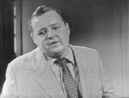 Marshall particularly has a nifty way with some of Nash’s cleverest stanzas, as he demonstrates leading the buoyant quartet, “The Trouble With Women”. Performed in “Rodney’s” humble shop, completing this odd-ball quartet (–each of whom get their own sardonically comical verses,) are Messrs. Gaynes, Nype and a pre-“Music Man” Iggie Wolfington (who would eventually originate the role of “Marcellus” for that musical’s official Broadway bow.) Here, Wolfington appears as “Black’s” accident prone, none-too-bright sidekick, “Stanley” (“He’s my wife’s brother—ain’t he brutal?!” ‘Taxi’ offers at one point by way of apology for “Stan’s” general oafishness.) Mildred Trares also serves up her share of chuckle-inducing snipes as “Rodney’s” catty and hectoring ‘intended’, “Gloria Kramer”, while Adina Rice, is her outlandishly hen-pecking mother, “Mrs. Kraemer”. Rice furnishes a considerable amount of funny moments—largely thanks to her expertise at expressing some overstated reactions of shock or indignation: “Gloria!” she sternly rebukes her daughter; “Remember what I told you about Rodney! Be Firm!” When later introduced to Mr. Savory, she salaciously fumes of her daughter’s intended: “I suspected him from the first—there’s something sneaky about him!” she spits; ““He’s one of those ‘quiet ones’—you never know what he’s thinking! He may tell you he’s a Barber but there’s more that goes on in that shop than haircuts!”