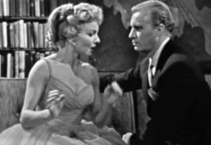 “I’ve always gone on the principle that direct action is the least painful–isn’t it preferable to have two people happy than three miserable? I say the thing to do is eliminate the rival…” Janet Blair as “Venus” commiserates with George Gaynes as “Whitelaw Savory” over the foibles and ‘poor foolishness’ of hearts in love in “One Touch Of Venus” now available on DVD from “Video Artists International”.