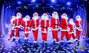 is Hunter Nelson whose “Dear Mr. Santa”, leading into the act break is a comic delight in its own right, as the seemingly shy young ‘elf’ lets us in on his special wish for December 25th : A real live “Show Girl” to call his own! (Well, it can’t ALL be for the kids!) Erica Baldwin, herself always a welcome presence at “The Gem”, thoroughly amazes several times over the course of the show, especially with “The Christmas Waltz (It’s That Time Of Year)”, as the rest of the cast waltz gracefully and gleefully around her; as well as during her verses of “Oh, Holy Night”. Kudos also go out to the younger members of the cast, who overflow with surprising talent (not to mention enviable agility) that belie their youthful years. Billed as “The Workshop Elves” they include Brynn Sparkle Reid, Kathryn Reid, Jordan Seto, Greer Smith and Sydney Sublette. On more than one occasion all through the proceedings, these kids prove to be the production’s A-One secret to enhancing the “WOW” factor significantly! And let’s not forget Damien Lorton either–who once again makes a terrific “Santa Claus”! If this time out, “Santa” has withdrawn a little to make way for the other characters, he nonetheless manages to make his substantial presence felt—predominantly when leading the rousing finale: “Be A Santa” (from the musical Jule Styne/Comden & Green “Subways Are For Sleeping”,) as we find that, in order to make up for lost time, he presses his helpers into service as a merry band of “Father Christmases” themselves gratis his invention “The Santa-tizer”. This sees the ‘elves’ transformed before our eyes, leading them to a magnificent kick-line of Santas that is, frankly, worth the cost of admission alone!
