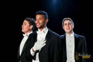 After the “Sisters” prelude, we’re transported to a magical land that comes complete with a coterie of dancing “Show Elves” who greet spectators with a tune-filled mélange including “Happy Holidays”, “Candy Canes, Silver Bells And Holly” and “Walking In A Winter Wonderland”, all of which occur in rapid-fire succession. Indeed, many (if not most) of the musical sequences come in extended medleys with the group performing classic songs one after the other, or with solo pieces performed (usually in threes) after which, the trio join together for still another ‘shared’ number. Such is the case with “Have Yourself A Merry Little Christmas” sung by three incredibly talented chanteuses: Erica Baldwin, Lexi Cross and Megan Mitchell. This is followed by the equally talented Kady Lawson who supplies a splendid–and novel–rendering of “White Christmas” complete with its seldom heard opening verse, along with a sultry samba for which she’s joined by Kalvin Sartin, Peter Crisafulli, Zach Martinez and Tad Fujioka. Subsequently, Fiona Wynder (who, we’re informed, was a recent addition to the cast) gives us an electrifying interpretation of “Let It Snow”, joined by verses sung by Ms. Baldwin, and Messrs. Crisafulli and Sartin. After intermission, it’s the boys’ turn as Tad kicks things off with a smooth, lyrical rendition of “My Buddy”, followed by Peter’s silky smooth delivery of “I’ll Be Home For Christmas”, culminating with an earnest and expressive “I’ll Be Seeing You” by Kalvin. To top it off, they then join together to harmonize a round-de-lay of all three songs performed in unison (and yes, they do go together–and it’s thrilling to hear!)